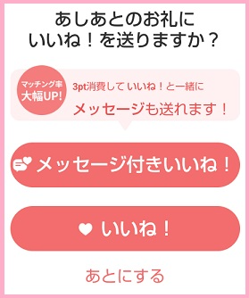 「自分のプロフィールを見てくれた=自分に興味がある」と判断できるため、足あとをつけてくれた相手に「いいね」を送ることで、マッチング率のアップにつながります。