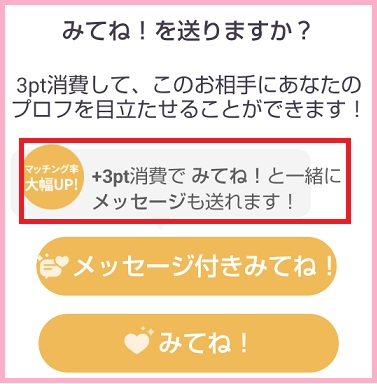 「みてね」は絶対にマッチングしたい相手への切り札的な機能です。