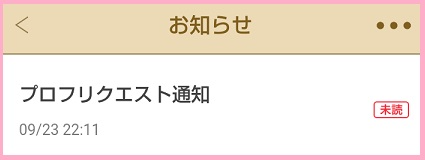 この時点では誰がプロフリクエストを送ってきたのか確認できませんが、プロフィールを登録して充実度を80%以上にすることで確認できるようになります。