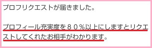 自分のプロフィールの充実度が80%未満だと、もちろん自分にもプロフリクエストが送られてくることがあります。