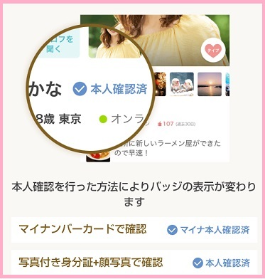 バッジが表示された相手とのマッチングが安全性の向上へとつながりますが、システム上、自分が本人確認しなければ相手のバッジも表示されないようになっています。